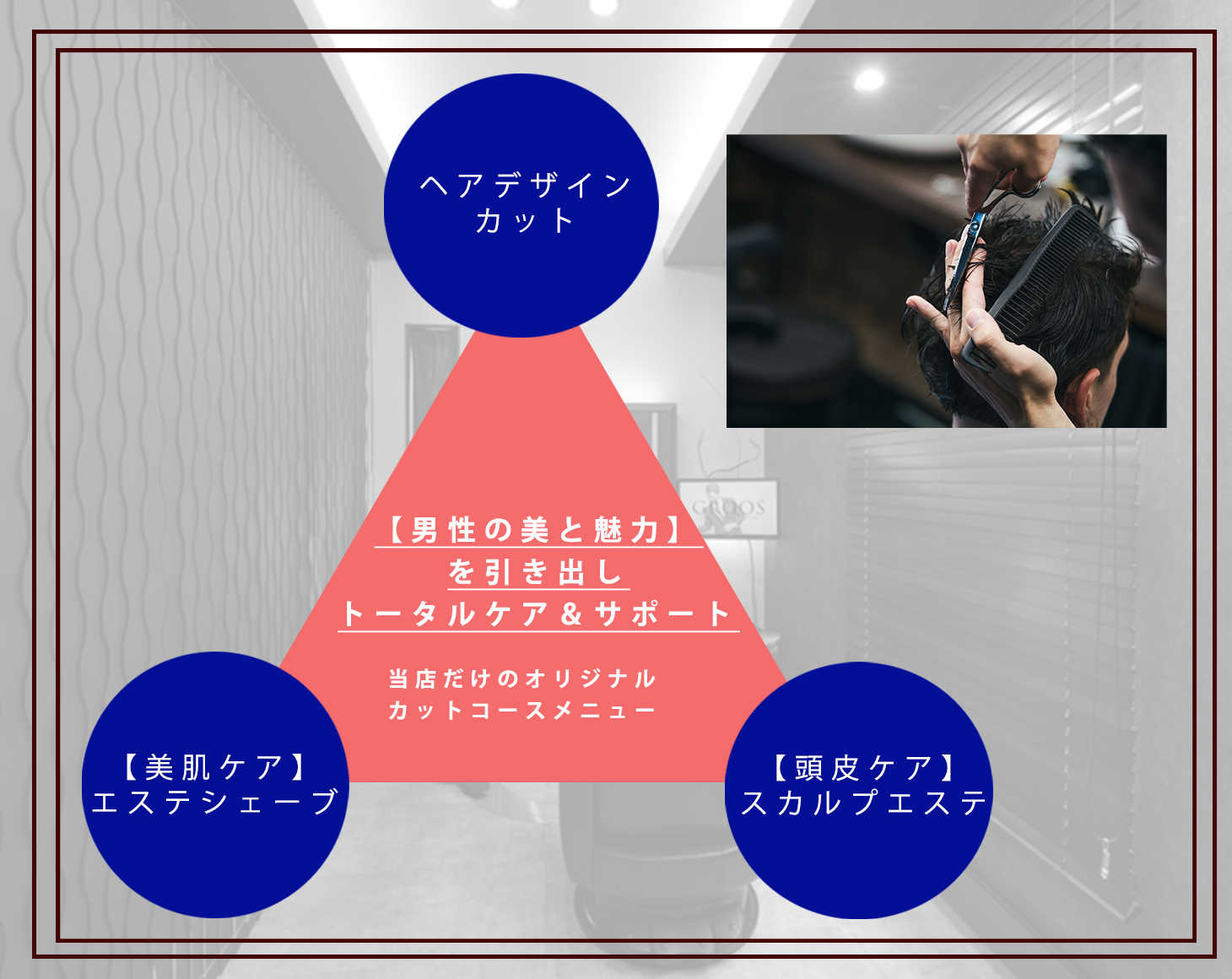当店は、大人の男性の美をトータルでプロデュースする「男性専用」美容室です。